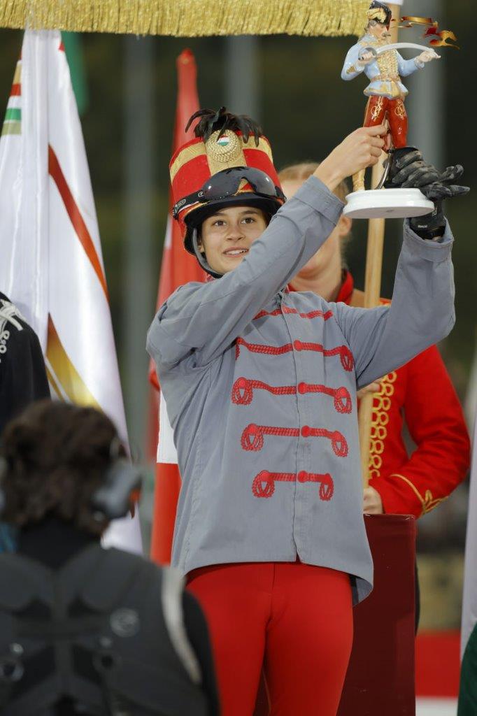 A Herendi alkotás mellett a versenyző átvehette a Nemzeti Vágta Vándordíját is, az 1848-as huszárszablyát, amely a nemzeti hagyományok és a lovas kultúra örökségét őrzi.