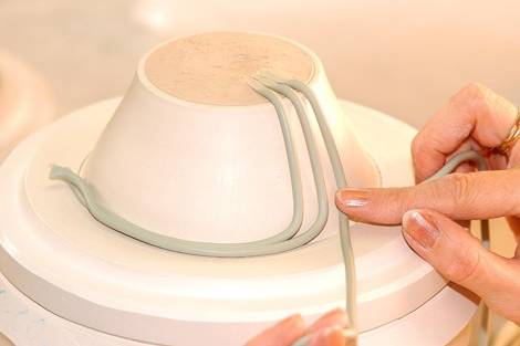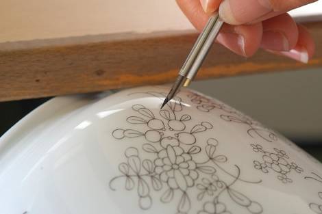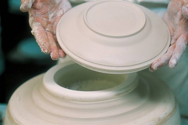 Szakértő kezek készítik elő a nyers porcelántárgyakat az első égetésre, amely kb. 950ºC-on történik